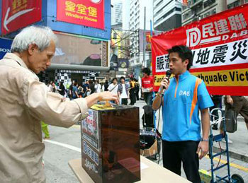多個政黨、團體和商業(yè)機構(gòu)均以不同方式參與賑災(zāi)行動,包括街頭和商場義賣、獻唱、大球場義賽等,市民紛紛慷慨解囊,祈求為災(zāi)民獻出一分力。