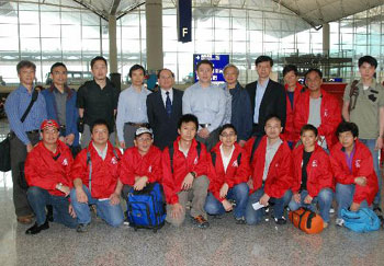 食物環(huán)境衛(wèi)生署署長卓永興、水務(wù)署署長馬利德及署理衛(wèi)生署衛(wèi)生防護(hù)中心總監(jiān)梁挺雄醫(yī)生,19日早在隊(duì)伍出發(fā)前吁請他們把香港市民的關(guān)懷和問候帶給受地震影響的災(zāi)民。他們又向救援隊(duì)的無私奉獻(xiàn)表示謝意,并鼓勵他們在行動中竭盡所能。