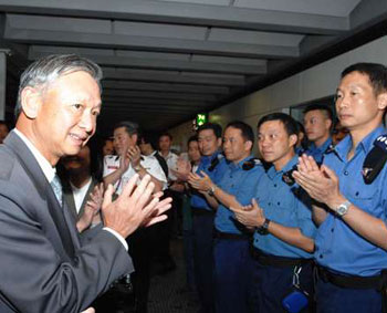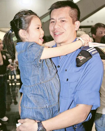 中新網(wǎng)5月23日電 據(jù)香港大公報報道,參與四川大地震搜救工作的香港搜救隊成員,22日晚自成都返港,獲得英雄式的歡迎。香港保安局局長李少光在歡迎式上致詞,盛贊各人表現(xiàn)英勇和專業(yè),不畏艱辛的無私奉獻,令港人感到驕傲。儀式完成后,隊員上前輕吻妻兒,更有人不禁流下男兒淚。