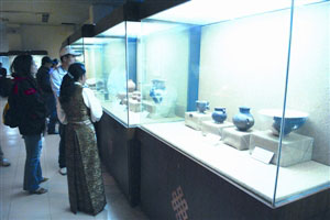 晚上,在當?shù)赜嘘P部門的安排下,記者團一行到西藏博物館參觀。西藏博物館藏品達3萬多件,其中已整理和建檔的文物中有國家一級文物304件。
