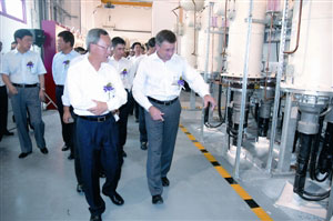 圖:劉仕堯等參觀變電站。(圖片來(lái)源:澳門日?qǐng)?bào))