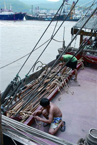 為期兩個月的南海伏季休漁期8月1日結(jié)束,大批內(nèi)地漁工日前已返回受雇的漁船工作,為錨泊內(nèi)港的200多艘漁船維修補給,如整理各種捕撈工具、添加燃油及購買冰塊,為8月1日上午復(fù)業(yè)作最后準備。