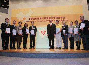 信托基金在10月中開(kāi)始接受香港非政府機(jī)構(gòu)申請(qǐng)資助,以協(xié)助四川重建工作,截至11月底,特區(qū)政府共收到超過(guò)40份申請(qǐng),首階段批出共12項(xiàng)申請(qǐng)。
