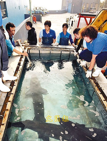 廈門基地負(fù)責(zé)人李奕慰說(shuō),一般與兩條病鱘一樣年齡10歲、身長(zhǎng)約2米的中華鱘,日進(jìn)食量應(yīng)該達(dá)到800至1000克,但6號(hào)鱘魚(yú)10多日來(lái),日均進(jìn)食量都在100克左右,恢復(fù)較慢的8號(hào)魚(yú)是從一周前才開(kāi)始進(jìn)行喂食,食量更僅有約80克,僅達(dá)正常食量的10%。