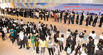 香港3個青年團(tuán)體18日專為大學(xué)及大專畢業(yè)生合辦招聘會,提供650個香港本地空缺及250個內(nèi)地職位空缺,吸引逾2500人到場應(yīng)征,平均逾2人爭一職位。月薪7000的十個內(nèi)地音響公司職位亦有超過一倍應(yīng)征者。有大學(xué)畢業(yè)生坦言,就業(yè)市場競爭激烈,希望借內(nèi)地職位獲取更大的發(fā)展空間。