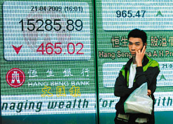中新網(wǎng)4月22日電 據(jù)香港《文匯報》報道,美股大跌近300點,令港股21日裂口低開685點,是近期少見的大調(diào)整,匯控等一眾金融股成為跌市火車頭。下午港股跌幅收窄,全日收報15285點,跌465點,跌幅3%,為兩周來最大跌幅,成交縮至576.8億。