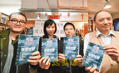 據(jù)香港大公報(bào)報(bào)道,紫藤3個(gè)月前招募20名義工出版免費(fèi)派發(fā)的《性愛(ài)!!!Fun》,刊物內(nèi)容主要包括介紹不同性用品、性經(jīng)驗(yàn)分享、由性工作者解答疑難的信箱,以及由專家分享性愛(ài)要訣等,預(yù)計(jì)會(huì)在月中派發(fā)約2000本創(chuàng)刊號(hào),派發(fā)地點(diǎn)包括紫藤、指定性商店和書店。市民可由今天起到紫藤網(wǎng)站下載。