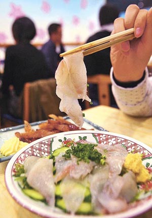 據(jù)了解,食環(huán)署早前已與日本有關(guān)當(dāng)局商討過,了解到當(dāng)?shù)啬壳耙彩窍薅ㄔ谏娇诳h下關(guān)市專門出口河豚,該些河豚是經(jīng)受訓(xùn)練的專業(yè)人員,安全有保障,故港府亦將考慮限制商戶,只能從下關(guān)市入口河豚刺身等食品。