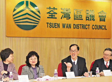 香港民政事務(wù)局局長(zhǎng)曾德成22日在尤曾家麗、民政事務(wù)總署署長(zhǎng)陳甘美華陪同下,出席荃灣與西貢區(qū)議會(huì)會(huì)議,聽取新一屆區(qū)議會(huì)的意見。
