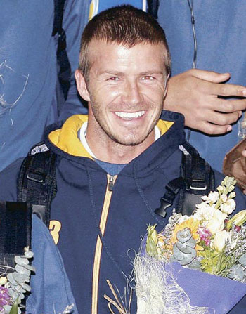 6日在機(jī)場(chǎng)及酒店僅有數(shù)十名球迷守候“萬(wàn)人迷”,撇除湊熱鬧的路人,數(shù)目較到場(chǎng)采訪的傳媒及保安還少。見(jiàn)慣大場(chǎng)面的貝克漢姆剛出通道便面露招牌笑容,但刻意低調(diào)的他僅在大堂逗留約5分鐘便離開(kāi),但他輕輕揮手已吸引女球迷大叫,令隊(duì)友及教練淪為陪襯。至于貝克漢姆妻子維多利亞及兒子則未見(jiàn)隨行。