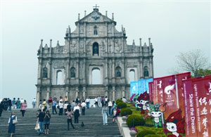 多個(gè)表演場(chǎng)地已加緊進(jìn)行布置,市面各處也布置一系列的宣傳品,中區(qū)各主要道路,以至通往大三巴等名勝古跡沿途,可見福娃造型擺設(shè)及北京奧運(yùn)彩旗,奧運(yùn)盛事氣氛漸現(xiàn)。