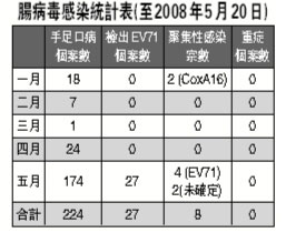 腸病毒感染統(tǒng)計(jì)表(至2008年5月20日)。(圖片來(lái)源:澳門日?qǐng)?bào))