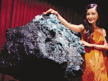 資料圖:港姐楊洛婷在香港抱趣堂藝術(shù)館內(nèi)向傳媒介紹綠寶石原生礦。當(dāng)日,該館展示法國(guó)留尼旺島開(kāi)采出來(lái)的,一個(gè)重達(dá)五百三十六公斤,長(zhǎng)達(dá)一百二十五厘米,闊七十八厘米及高五十五厘米的綠寶石原生礦。據(jù)稱,該礦石是目前世界上最大的寶石原生礦。 中新社發(fā) 洪少葵 攝