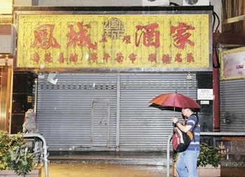 發(fā)生懷疑食物中毒事件后,上環(huán)鳳城酒家11日晚沒有營業(yè)。(圖片來源:明報)