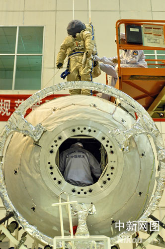 中國(guó)神舟七號(hào)載人航天飛船發(fā)射在即。圖為飛船在進(jìn)行測(cè)試。袁明月 攝