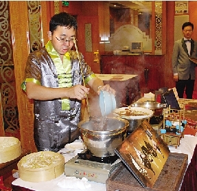 29日記者招待會(huì)現(xiàn)場(chǎng),更邀請(qǐng)六家本次參加美食節(jié)的臺(tái)灣與會(huì)美食餐廳,如青青餐廳、宜蘭礁溪老爺大酒店、南投金都餐廳、河邊海鮮餐廳、度小月?lián)忻、周氏蝦卷即場(chǎng)示范鎮(zhèn)店之寶的烹調(diào),并向大家推介當(dāng)?shù)仫嬍澄幕?/p>
