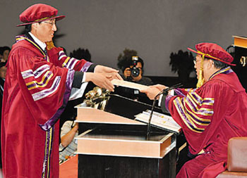 郭位又指,城大正致力統(tǒng)籌制訂新學(xué)制過(guò)渡期的總體策略,提倡“問(wèn)題驅(qū)動(dòng)式研究”的精神,期望城大能滿(mǎn)足香港社會(huì)需求。就職禮后,他向3位榮譽(yù)博士及各城大畢業(yè)生致以祝賀,同時(shí)宣布城大25周年慶祝系列活動(dòng)正式開(kāi)始。