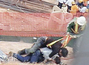 工友其后上前勸止及拉開逞兇者,衛(wèi)永康不欲被兇徒逃去,負傷企圖抓緊疑人雙腳,但不成功,兇徒再掙開工友,再向衛(wèi)連環(huán)出拳及起腳襲擊其頭部及身體,衛(wèi)永康被毆至暈厥。調(diào)查工傷的警員見狀趕至才控制場面,警員調(diào)查后,把涉嫌傷人的李某拘捕帶署,但并沒有帶走涉“叉頸”的工人,衛(wèi)永康則由救護車送院救治。