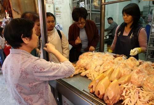 為準(zhǔn)備冬至,昨日九龍城、灣仔、銅鑼灣街市一帶人頭涌涌,不少市民已在早上購買餸菜“做冬”。不過受到禽流感影響,香港首次冬至市面沒有活雞供應(yīng),街市雞檔全部改賣冰鮮雞,每只售價約四十五至七十五元。雞檔檔主表示,全日入了大約一百多只冰鮮雞,不過擔(dān)心在目前的經(jīng)濟(jì)環(huán)境下,生意難做,因此不敢加價,“現(xiàn)在這種環(huán)境,你再加,人人跑到超市買,自己反而沒生意!
