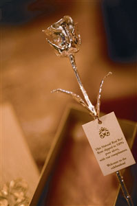 圖:蘸上純銀的鮮花玫瑰回贈(zèng)嘉賓。(圖片來源:澳門日?qǐng)?bào))