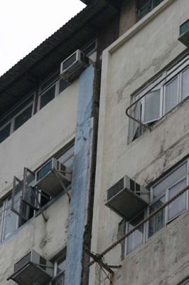 現(xiàn)場(chǎng)為大角嘴橡樹街九十號(hào)橡樹樓,樓高十一層,有三十四年樓齡,與隔鄰的廣和大樓緊貼。據(jù)街坊表示,兩幢大廈之間在大約二十年前,已出現(xiàn)一條明顯裂縫,但未有發(fā)現(xiàn)大廈結(jié)構(gòu)出現(xiàn)問題。