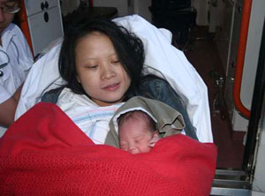 昨日中午十二時(shí)零二分,邱婦由丈夫陪同下乘坐粵港直通火車由廣州來港,坐于第三卡普通等車廂。當(dāng)火車越過深港邊境駛抵羅湖火車站時(shí),突然感到腹部痛楚,腹中胎兒急不及待要出世,其夫慌忙找列車人員求助。九廣東鐵得知情況后,將火車停泊羅湖火車站側(cè)線,透過廣播向乘客宣布阻延原因。乘客中有一名美籍華裔女醫(yī)生和數(shù)名護(hù)士,聽到消息趕往該車廂提供協(xié)助,眾人分工合作,協(xié)助邱婦順利誕下麟兒,夫婦皆歡喜若狂,救護(hù)人員稍后亦趕至。