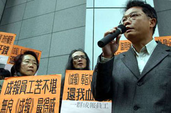 大約三十名《成報(bào)》前員工22日中午在工聯(lián)會(huì)立法會(huì)議員陳婉嫻陪同下,手持橫額和標(biāo)語到在灣仔的警察總部抗議并報(bào)案,要求警方商業(yè)罪案調(diào)查科就成報(bào)欠薪事件進(jìn)行調(diào)查,協(xié)助50名員工追討300萬元欠薪。員工代表說,法庭去年雖然裁定《成報(bào)》要分四期償還欠薪,但員工至今仍未收到款項(xiàng),促請(qǐng)政府正視事件,并希望政府檢討勞工法例。
