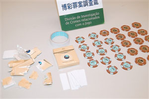 警員同時在兩人身上搜出多達29個面值10萬元的籌碼,不排除兩人利用貼有兩雙面膠紙的煙盒,黐走事主放在賭臺上的籌碼。