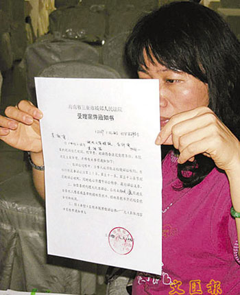 中新網(wǎng)4月10日電 據(jù)香港文匯報(bào)報(bào)道,再有港商因涉重婚罪被香港大老婆告上法庭。港婦吳新菊9日手持法院受理通知書(shū)接受香港媒體訪問(wèn),稱不滿老公黃×躍在深圳包二奶,并利用假身份證在海南與二奶結(jié)婚生仔,已向海南三亞地方法院控告老公犯“重婚”和使用假身份證。
