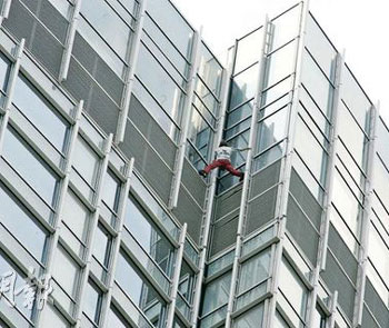 中新網(wǎng)4月16日電 據(jù)香港明報(bào)報(bào)道,法國(guó)蜘蛛俠再戰(zhàn)香港摩天大廈!曾征服世界近70幢高樓的攀爬好手羅伯特,繼1996年及2005年成功攀登遠(yuǎn)東金融中心及長(zhǎng)江集團(tuán)中心后,15日再度徒手攀爬樓高60層的中環(huán)四季酒店。其間他因頂層結(jié)構(gòu)復(fù)雜險(xiǎn)告失手,幸最終有驚無(wú)險(xiǎn),大批市民報(bào)以掌聲及喝彩。