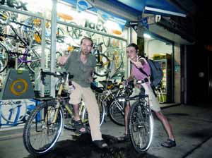 中新網(wǎng)4月23日電 單車游世界屢見不少,多數(shù)都出師有名,為奧運(yùn)、為和平等偉大理想,但游歷四十一個(gè)國家,用四條輪胎行走了六萬八千公里的法英夫婦被問相關(guān)問題后,坦白而直接地回答,“放眼世界,以人力單車代替電油發(fā)動(dòng)的火車、飛機(jī),既省錢又環(huán)保,這不是更好嗎?”