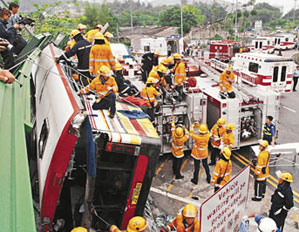 中新網(wǎng)5月6日電 據(jù)香港文匯報(bào)報(bào)道,上周四(5月1日)在香港西貢南邊圍回旋處釀成18死44傷的旅游巴翻側(cè)大車禍,一名于北區(qū)醫(yī)院留醫(yī)的45歲女傷者,經(jīng)5天搶救后延至5日終告?zhèn)夭恢危畲筌嚨溗勒咴鲋?9人。