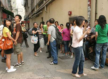 五月十二日晚,香港市民在街頭觀看新聞,關注四川等地發(fā)生的地震消息。當天下午,香港天文臺也接獲多名市民的報告,表示感覺到一次震動。 中新社發(fā) 洪少葵 攝