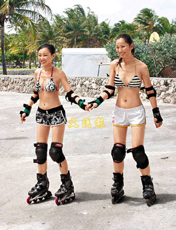 中新網(wǎng)6月2日電 據(jù)香港文匯報(bào)報(bào)道,《2008香港小姐競(jìng)選》最后一日的活動(dòng)在邁阿密“South Beach”拍攝,12位候選港姐被安排分組穿著三點(diǎn)式加短褲在沙灘玩滾軸溜冰、單車、飛碟和跑步。而整個(gè)港姐外景拍攝亦已經(jīng)結(jié)束,于1日起程返回香港。