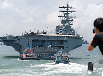 有海上巨無霸之稱的“里根號(hào)”已經(jīng)是第三次訪港,戰(zhàn)斗群還包括五艘驅(qū)逐艦,主要在西太平洋及印度洋執(zhí)行任務(wù),負(fù)責(zé)海事保安行動(dòng)及作戰(zhàn)支持任務(wù)。對(duì)于“里根號(hào)”訪港后的行程,James Wisecup指暫時(shí)未能透露去向。