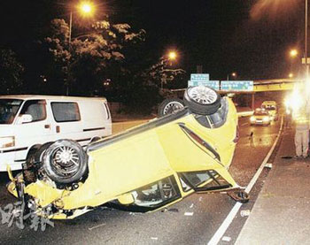 黎海榮去年9月斥資近16萬(wàn)元,購(gòu)買一輛鈴木Swift Sport黃色小跑車。4日凌晨4時(shí)許,他駕車沿大埔道慢線往沙田方向行駛,擬返回沙田馬場(chǎng)參與晨操,但駛至銀禧花園對(duì)面一個(gè)左彎時(shí),黎海榮報(bào)稱因閃避切線車輛導(dǎo)致失控,跑車撞向路邊石柱及掃毀一段鐵欄后,反彈回路中四輪朝天,再滑行約30米橫在路中。