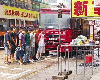 中新網(wǎng)8月12日電 據(jù)香港文匯報(bào)報(bào)道,陰沉天空下,凄迷細(xì)雨中,日前剛剛發(fā)生5級(jí)大火的香港嘉禾大廈前,素潔的鮮花堆成小山,寄托著對(duì)舍己救人的消防英雄蕭永方、陳兆龍的無限崇敬和哀思。