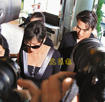 身穿深色裝束的三太縱然已戴上太陽眼鏡,但仍難掩哀傷神情,一言不發(fā)的在保鏢開路下匆匆進入靈堂。至于陪同母親步入靈堂的超蓮和猷啟則沒有戴上太陽眼鏡,但同樣表情神傷。