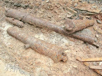 中新網(wǎng)9月19日電 據(jù)香港明報(bào)報(bào)道,香港金鐘英國(guó)駐香港總領(lǐng)事館對(duì)面地盤,挖出4支共重3噸的生銹大炮。爆炸品處理課人員檢查后,證實(shí)為沒(méi)有殺傷力的戰(zhàn)前古炮。
