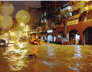 下環(huán)區(qū)水深逾米,停泊汽車(chē)被浸。(圖片來(lái)源:澳門(mén)日?qǐng)?bào))