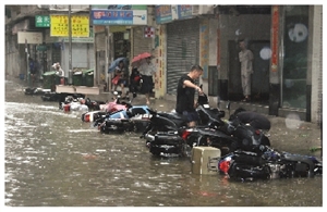 “黑格比”為12年來吹襲廣東最強(qiáng)勁的臺(tái)風(fēng),澳門沿岸海面24日現(xiàn)驚濤駭浪,漁船紛回港暫避。雖然雨水不多,但臺(tái)風(fēng)引起的大潮令內(nèi)港、新馬路一帶海水倒灌,造成附近多條街道水浸,最高水深逾1.5米。私家車被水淹浸,車主叫苦連天。