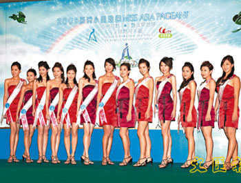 中新網(wǎng)10月14日電 據(jù)香港《文匯報(bào)》報(bào)道,13位“2008亞洲小姐競選(香港賽區(qū))”的候選佳麗,13日在亞視總臺首次會(huì)見新聞界。13位候選佳麗分別穿上大會(huì)安排的紅色和紫色Tube Dress現(xiàn)身,并作自我介紹。