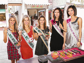 中新網(wǎng)11月18日電 據(jù)香港《文匯報(bào)》報(bào)道,應(yīng)屆港姐張舒雅與馬賽,17日一盡地主之誼,帶領(lǐng)三位出爐國(guó)際小姐到將軍澳電視廣播城參觀古裝街,而張舒雅更為西班牙小姐充當(dāng)翻譯。