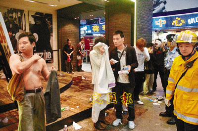 疑遭通渠水濺傷的20男26女,年齡由14至53歲,大部分是年輕人,他們身體多處被腐液濺中,包括頭部、眼部、面部、手部、身體以及雙腳,都有不同程度的灼傷紅腫。部分人的衣服被灼穿如蜂巢,出現(xiàn)多個(gè)小洞。有傷者雙眼被濺中,不停以礦泉水沖洗;亦有男途人索性將被灼穿的衣服脫去,赤膊露體自救;有女傷者慌亂大哭。