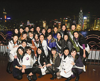 雖然天氣寒冷,但來自各國各地的佳麗均覺得機會難逢,不怕寒風(fēng)吹襲,在甲板上觀賞這“東方之珠”璀璨的夜景,不少佳麗拿出相機拍照留念。