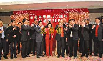 中新網(wǎng)2月18日電 曾憲梓創(chuàng)辦的金利來集團已成立40周年,15日晚筵開40席慶祝,當晚更是曾憲梓74歲壽辰,曾氏一家大小俱盛裝出席,集團高層及員工代表紛紛送上生日祝福,晚宴上曾憲梓更是與大家分享創(chuàng)業(yè)及自己的人生志向。