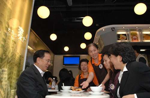 在結(jié)束訪問前,曾蔭權(quán)到訪地鐵奧運(yùn)站一間商場內(nèi)的甜品店,該甜品店是由東華三院賽馬會(huì)大角咀綜合服務(wù)中心營運(yùn)的社會(huì)企業(yè),為區(qū)內(nèi)失業(yè)單親中年婦女和低學(xué)歷雙失青年提供就業(yè)機(jī)會(huì)。除了售賣多種甜品外,甜品店亦零售“麥嘜麥兜”產(chǎn)品和提供家居服務(wù)。
