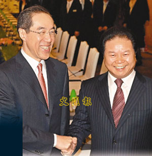 在會(huì)議開始前,“兩兄弟”即主動(dòng)向在場采訪的記者拜個(gè)早年,又預(yù)期會(huì)議定必成功。湯炳權(quán)笑說,很高興香港在回歸10周年有輝煌成就,而香港于07年經(jīng)濟(jì)又快又好地發(fā)展,人民安居樂業(yè)。他坦言,此際要說的還是以往那一句:“香港好,廣東好;廣東好,香港更好!