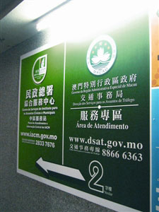 圖:中華廣場(chǎng)梯間設(shè)交通局服務(wù)指示牌。(圖片來源:澳門日?qǐng)?bào))