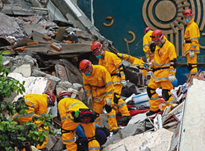 中新網(wǎng)5月16日電 據(jù)香港文匯報(bào)報(bào)道,四川省副省長李成云15日下午表示,一支由20名消防員和救護(hù)人員組成的香港特區(qū)搜救隊(duì)攜帶大量專業(yè)工具,已于15日上午進(jìn)入重災(zāi)區(qū)綿竹市漢旺鎮(zhèn)展開救援,F(xiàn)場(chǎng)消息指至今最少掘出5具尸體,料最少尚有20人被困。